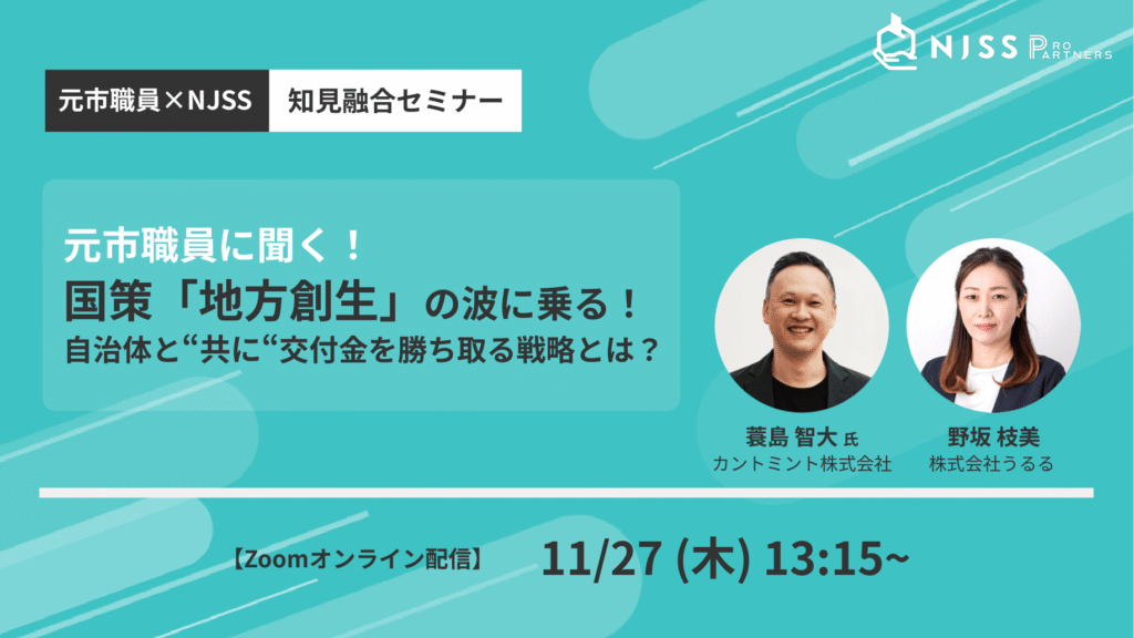 札幌市・経済産業省で官民連携事業に携わってきた蓑島智大氏(カントミント株式会社)と、今期よりNJSSのBPO領域を提供する特販部長に就任した野坂枝美(株式会社うるる)が登壇します。